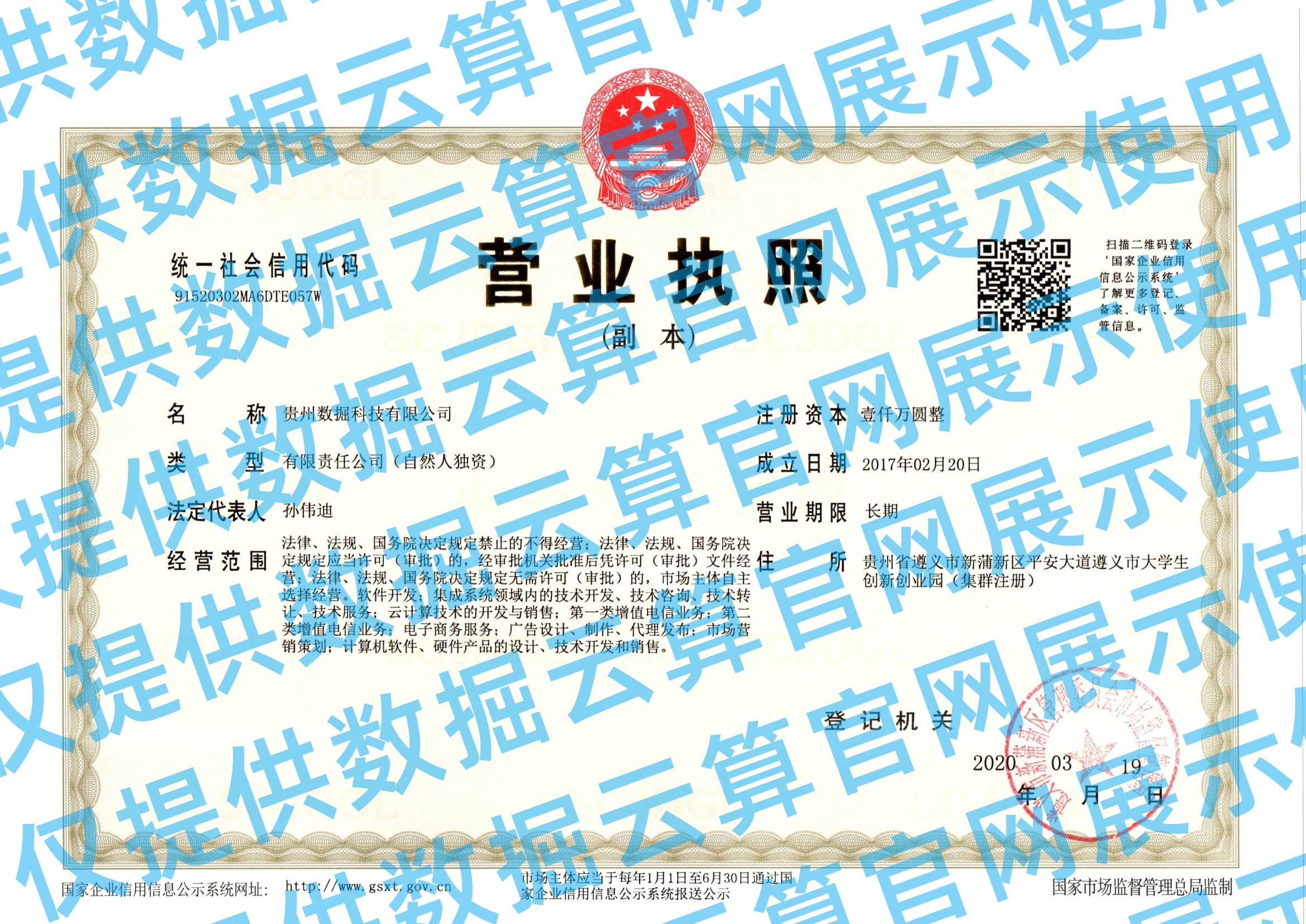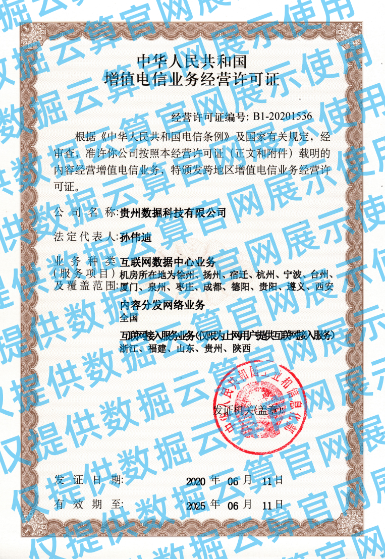 贵州数掘科技有限公司,创立于2017年2月,公司作为国家中小型科技型企业,拥有多项软件著作权、商标。我们专注于云服务基础设施服务平台(IaaS)的研发和运营,凭借基于强劲硬件构建的云计算平台,覆盖大陆、香港和美国数据中心集群的全路由BGP融合网络,为企业/开发者提供安全可靠、可扩展的计算、存储、网络资源,以及深度运维管理服务。 目前,数掘科技主要提供云虚拟主机、云服务器、服务器租用、网络安全保护等多层次的商务级WEB解决方案,并通过提供技术运维服务来消除用户接入互联网终端服务的入门门槛,最大程度地降低用户在实际业务中的总体拥有成本及运营风险。我们是遵义市首家四证齐全(IDC/ISP/CDN/IRCS)公司,《中华人民共和国增值电信业务经营许可证》:B1-20201536。